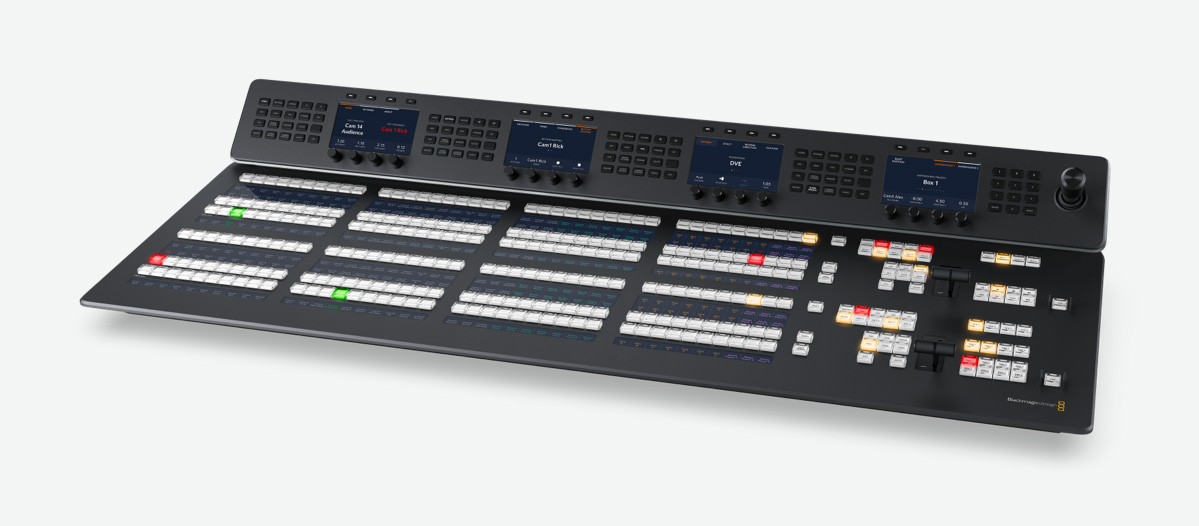 The perfect hardware panel for ATEM 4 M/E Constellation! It features 4 M/E rows with 40 buttons per row and 4 system control LCDs. With 24 LCDs, you can custom label every button on every row!